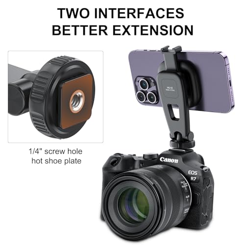 The VRIG mount is compatible with iPhone 12, 13, 14 series, and MagSafe cases. Plus, use the included magnetic ring for other phones and cases. Enhance your outdoor shooting with our built-in cold shoe design, ready for a microphone or fill light. Lightweight and compact at just 89g, it’s designed for ultimate portability without scratching your phone. Additionally, it's adaptable with cameras and camera cages, and offers a 90° adjustable angle for the most comfortable viewing position.